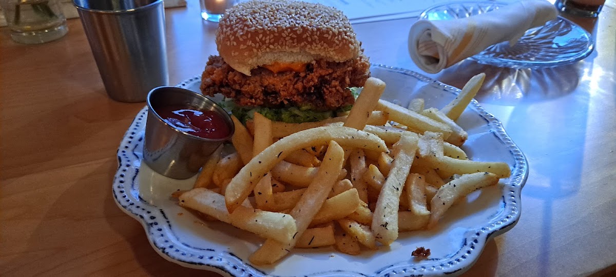 The menu is where this place really starts to shine. One of the most talked-about items is the Crispy Chicken Sandwich, which balances crunch and flavor in a way that feels both indulgent and well thought out. It’s the kind of dish that keeps popping up in reviews because it delivers every single time. Right alongside it, the Kung Pao Brussels Sprouts add a bold, slightly spicy option that works equally well as a shared plate or a personal favorite. Pairing these dishes with a cold Beer from the menu feels natural, especially if you’re visiting during happy-hour food service.